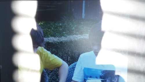 Het is een foto van onze twee tieners tijdens het zomerse feestje voor hun verjaardagen, die samen een enorme soezentaart aansnijden zodat zij en de andere zoetebekken er hun tanden kunnen inzetten. De schaduw van mijn hoofd valt voor de ene helft op de jongste en voor de andere op de oudste, zodat hun jonge kopjes gedeeltelijk verduisterd worden en slechts voor de helft in het zonlicht schitteren. Ik zie hen in mezelf en mezelf in hen: