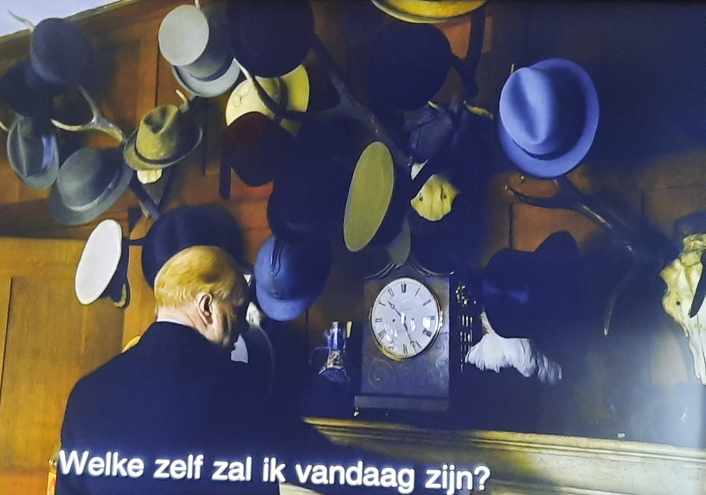 “Welke zelf zal ik vandaag zijn?” Dat is de vraag die deze man zichzelf stelt nadat zijn vrouw hem het advies geeft gewoon zichzelf te zijn voor misschien wel de belangrijkste afspraak van zijn leven. Hij lijkt zich wat gevangen te voelen in die keuze, wat bijzonder mooi versterkt wordt door het ruime aanbod aan hoeden (persoonlijkheden) waaruit hij zou kunnen kiezen. Een injectie authenticiteit. De strijd van een HSP om zich als een kameleon op te stellen en zich thuis te voelen. Maakt de hoed de man? Blijf vooral jezelf.