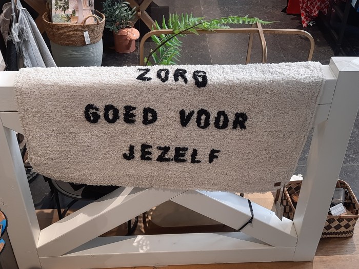 Een mooie mat om even bij stil te staan vooraleer je de deur uitgaat of gasten uitlaat. Zelfzorg, het blijft een vorm van anderenzorg.