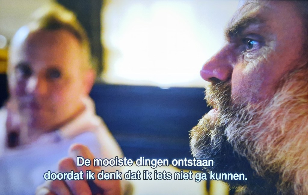 Met dat moment in het achterhoofd, ben ik op zoek gegaan in mijn ondertussen ruime archief van screenshots. Ze komen uit verschillende reeksen, films, reportages of wat dan ook en lijken op het eerste gezicht misschien niet echt iets met elkaar te maken. Toch vind ik het heerlijk om er ook nu weer een aantal achter elkaar te zetten, met de bovenstaande gedachten als rode draad: over angst om te falen of voor beoordeling loslaten, twijfel, durf, naar iets toe wandelen in plaats van weg te lopen van iets wat je niet meer wil, kiezen of gewoon doen, falen mag, niemand is perfect, dus angst en twijfel als kiem van iets moois, met uiteindelijk jijzelf aan het roer…