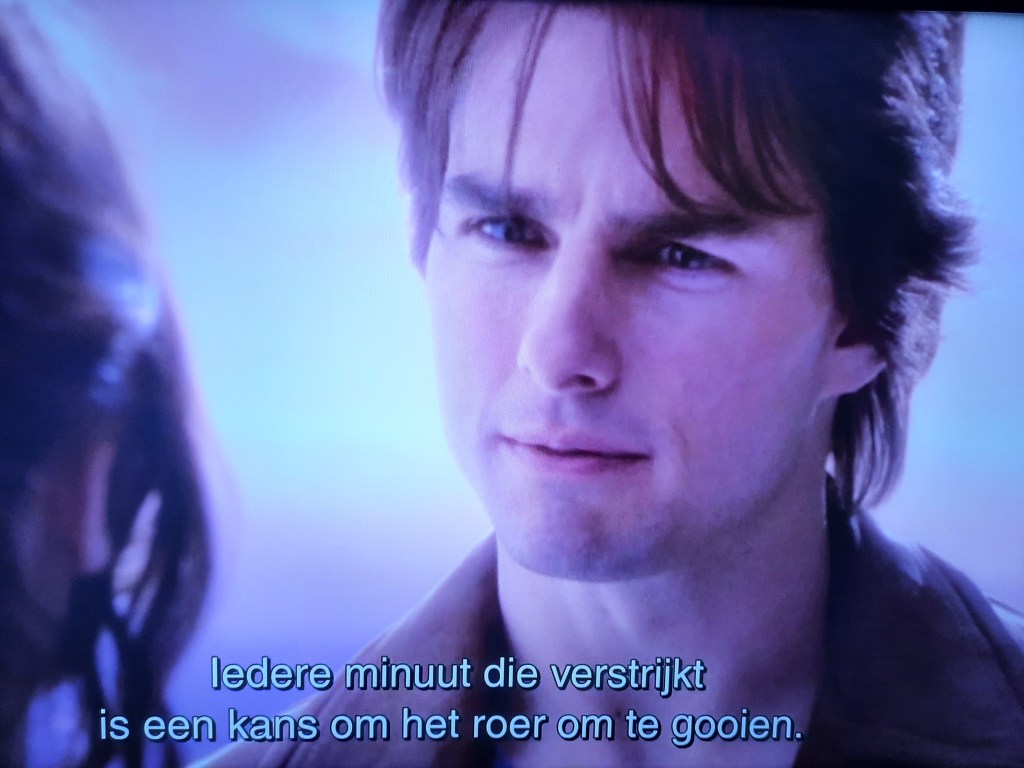 Ik moet toegeven dat het verhaal binnenkwam en aan mijn universele twijfel appelleerde, een eigenschap die me zowel al danig parten gespeeld heeft als wapende tegen onbezonnenheid. Eerder zag ik flarden van Vanilla Sky, met Tom Cruise in de hoofdrol, deze keer – toevallig nu – het hele verhaal. Daarbij viel het me nu op dat er meer dan één nummer van Sigur Rós in de soundrack zit, dat ook het lijflied ‘Svefn-g-englar’ van waar je werkelijk ademt zachtjes weerklinkt terwijl de acteurs hun ding doen.