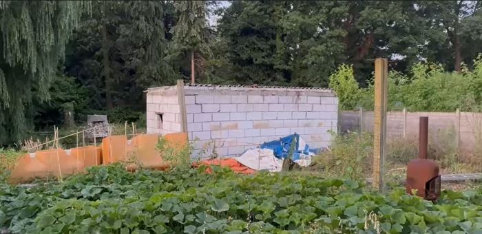 Nu was het dus ook tijd om het grootste hok in ytongblokken af te breken. Er stond enkel nog wat materiaal in, de muren waren te gammel geworden en het golfplaten dak dateert uit de periode dat asbest nog als best bestempeld werd. Tijd voor een duurzame oplossing en om opnieuw plaats te maken voor meer natuur. Zo komt er een einde aan wat als typisch Vlaamse koterij omschreven wordt. Hier een hok, daar een stukje eraan, enz. Een optelsom van momenten, keuzes en gebeurtenissen. Bouwen, scheurtjes, repareren, breken, heropbouwen. Gaat het in het leven niet net hetzelfde? Van vreugdevol tot verdrietig, tussen lief en leed. Zelden volgens het initiële plan. Waar vroeger beestjes knaagden en floten, groeien nu elk jaar weer meer groenten, bloeien (veld)bloemen en andere planten. Ziet ma van bij de achterdeur tot vijver en neet dat het goed was. Dat het goed is. Net als pa, vanuit de bovendeur.
