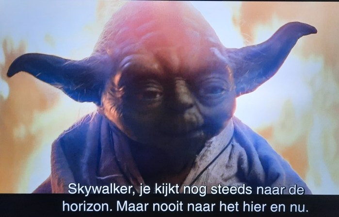 Origineel, prequel, sequel, a long time ago, in a galaxy far away of ergens tussenin waar tijd niet bestaat. Eerder dit jaar verscheen de volledige reeks van Star Wars nog eens de revue. Het viel me daarbij onder andere op dat de speciale effecten van de episodes uit de jaren ’70 van het vorige millennium nu op zijn zachtst gezegd minder spectaculair ogen. Onze jongens moesten er zelfs om gniffelen. Ik legde een aantal beelden vast met technologie die we in de tijd van toen onmogelijk achtten. Vooral voor de quotes… Er is heel wat veranderd. En ook veel hetzelfde gebleven. Bijvoorbeeld de wijsheden doorheen het verhaal dat vermoedelijk nooit stopt en waarvan we het begin misschien nog moeten ontdekken.
