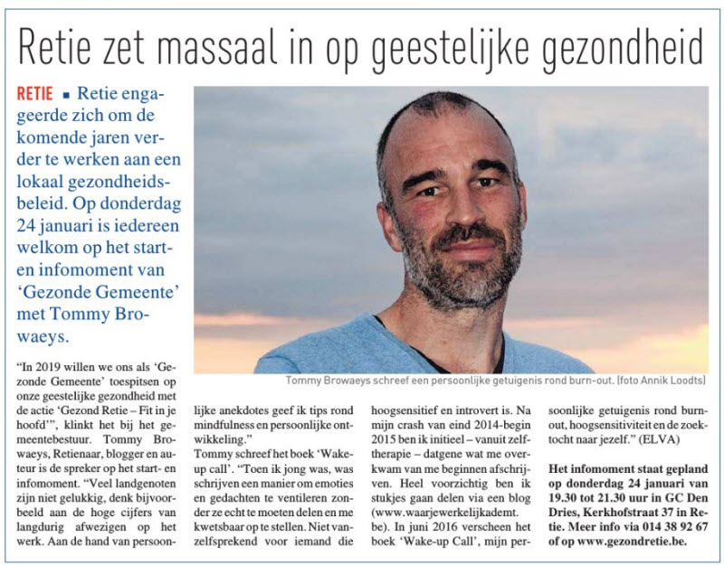 Deze Week editie Geel-Mol wijdt het coverartikel aan de campagne Fit in je Hoofd van de gemeente Retie, waar ik met heel veel goesting de aftrap geef. Op naar de gelukkigste gemeente van Vlaanderen: