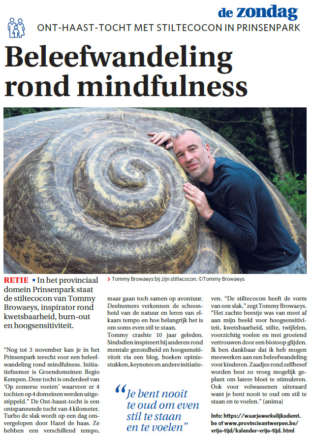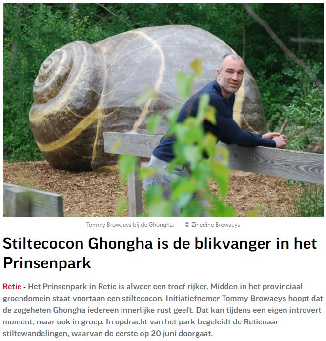 Persbericht van de Provincie Antwerpen over de stiltecocon die ik voor het Prinsenpark in Retie creëerde: