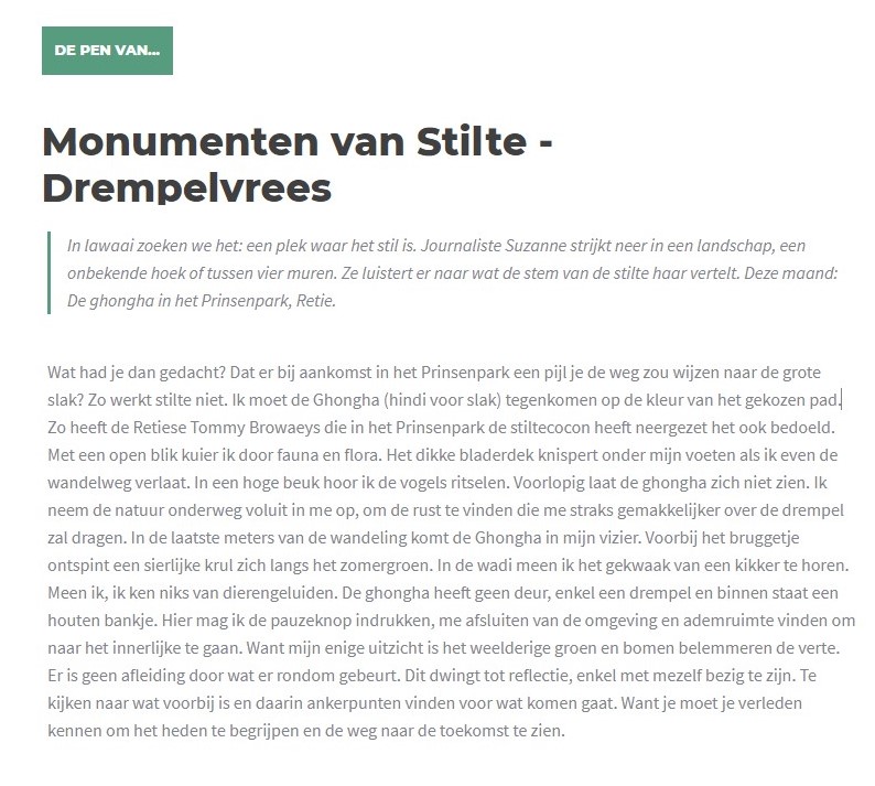 Mooie neerslag van een warm gesprek in de stiltecocon voor Samana Magazine: