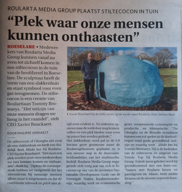 De Zondag bericht over een plekje waar mensen kunnen onthaasten bij Roularta: